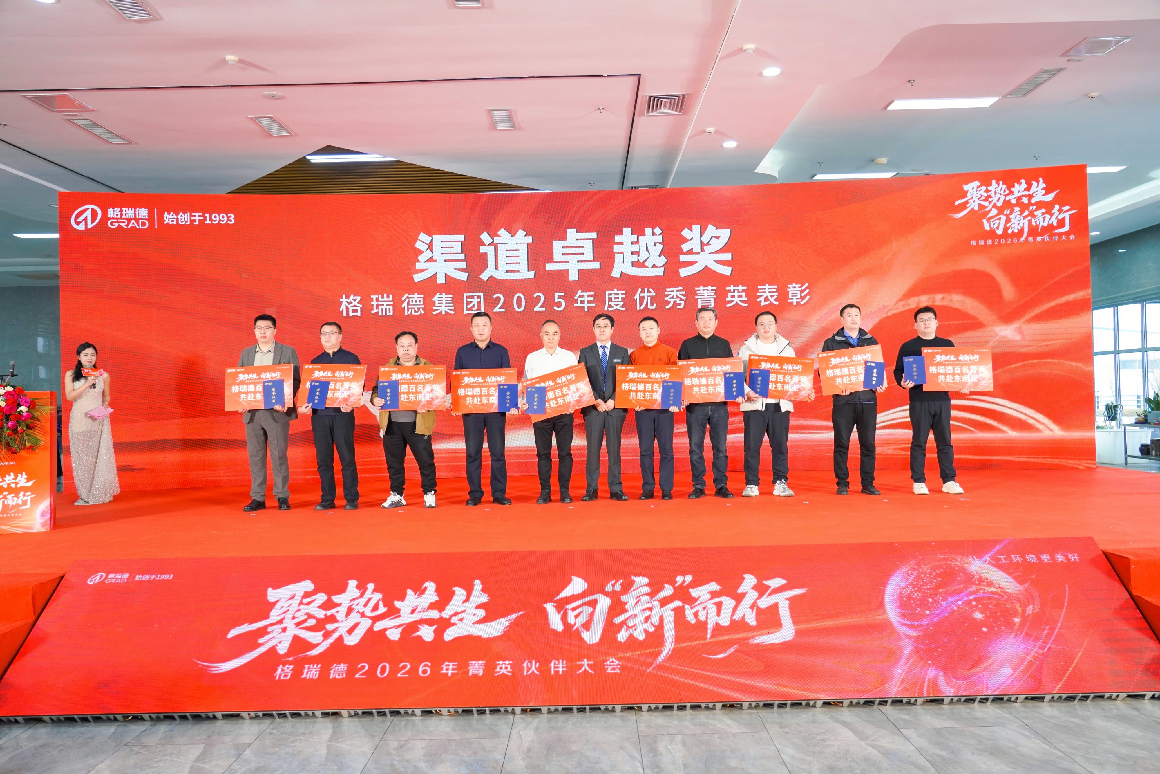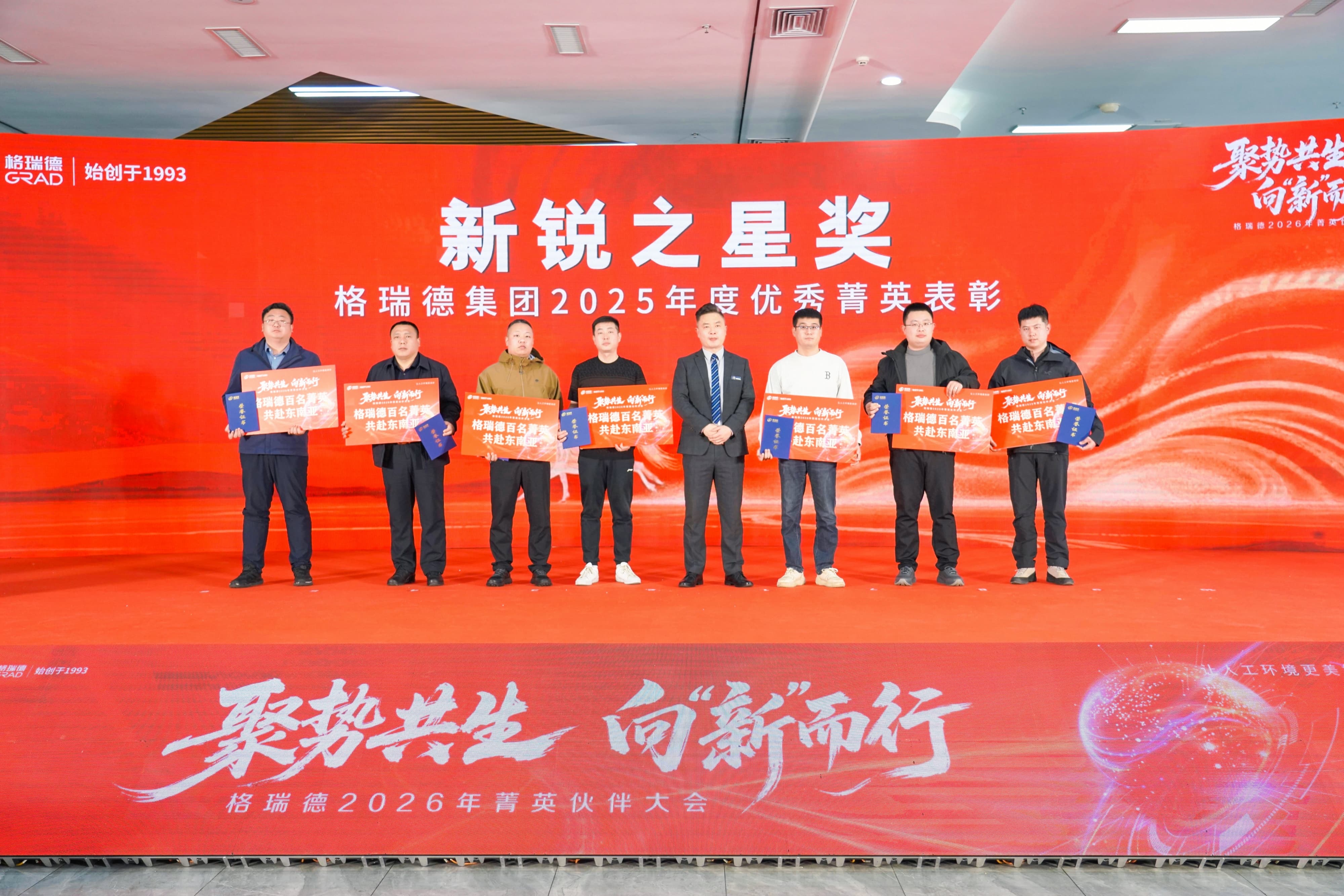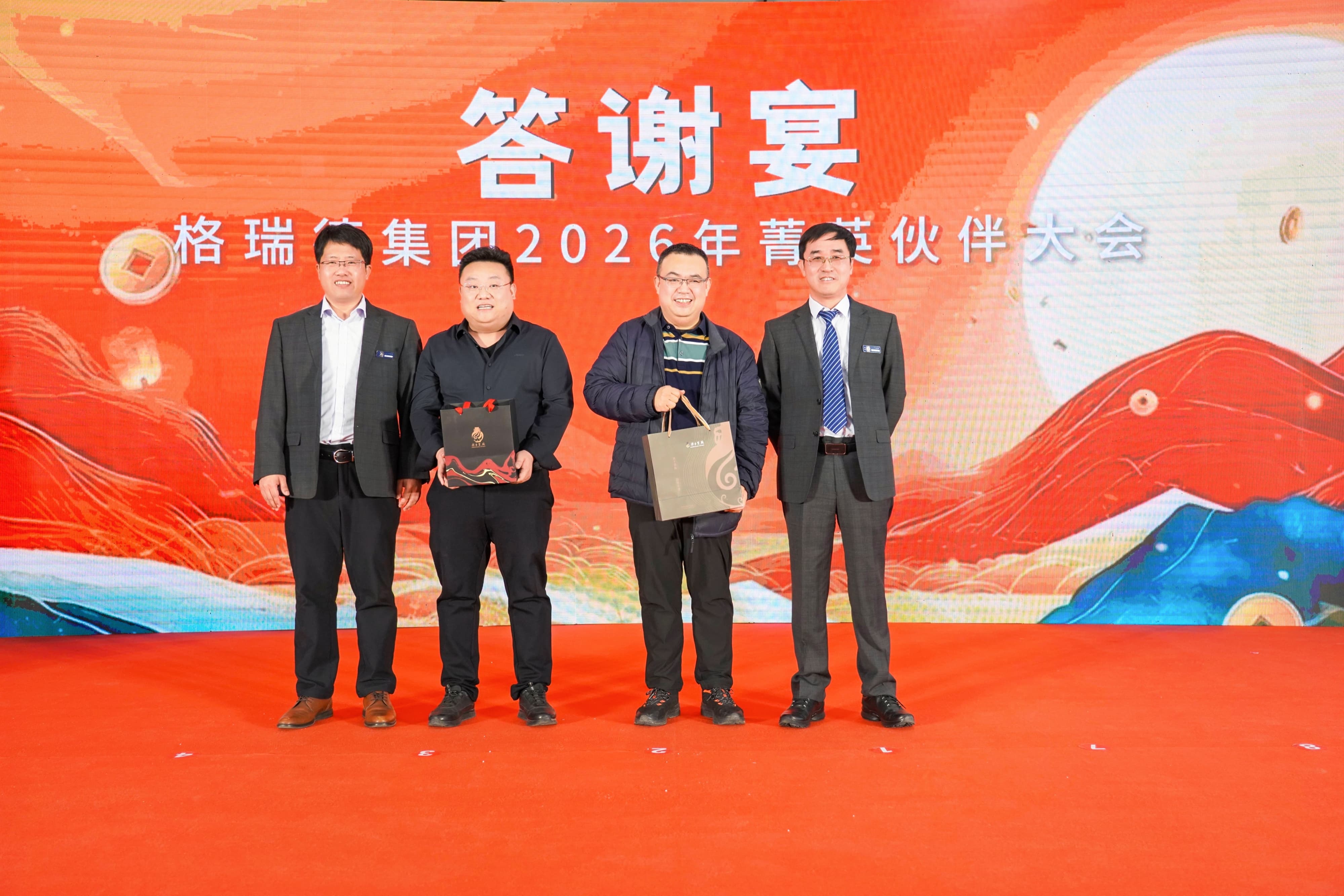 颁奖现场,三位获奖代表先后登台分享感言,言辞恳切间满是对格瑞德的信任与对未来合作的期许。新锐奖获奖代表表示:“作为行业新生力量,我们有幸与格瑞德携手同行。格瑞德开放的合作平台、专业的技术支持与全方位的赋能体系,为我们的快速成长提供了强大助力。这份荣誉是认可更是责任,2026年我们将紧跟格瑞德的战略步伐,锐意进取、勇攀高峰,以更优异的成绩回报信任与支持。”渠道卓越奖获奖代表感慨道:“深耕渠道多年,我们深刻体会到,与格瑞德的合作是最坚实的依靠。集团完善的渠道支持政策、高效的协同机制与强大的品牌背书,让我们在市场拓展中事半功倍。未来,我们将持续深化渠道布局,与格瑞德同心聚力,共同拓展市场新空间。”业绩领航奖获奖代表则深情致谢:“亮眼业绩的取得,离不开格瑞德硬核的产品实力、领先的技术优势与全方位的平台支持。与强者同行,方能行稳致远。2026年,我们将与格瑞德进一步深化战略合作,在更多领域、更高层次实现共赢发展,共同铸就行业新标杆。”